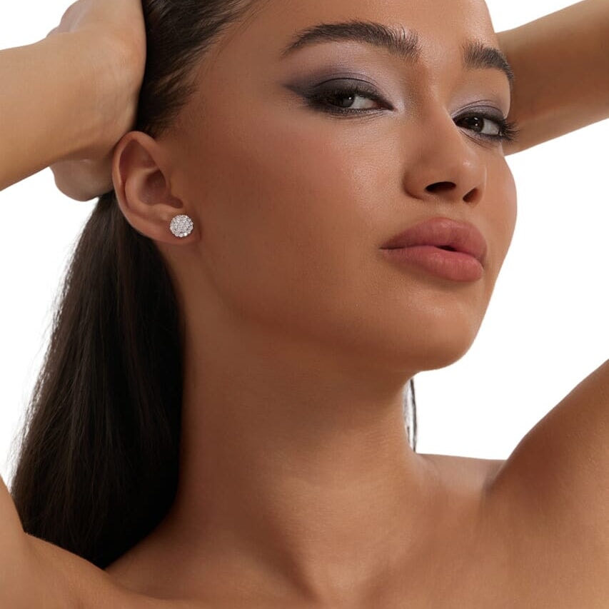 Crafted with 925 Italian silver as the base material, our earrings are kind to all skin types. Featuring authentic 14k, 18k, and white gold, our pieces are enhanced with five layers of PVD plating technology and a high-polish finish for exceptional brilliance and durability. For diamond earrings, we provide hand-set D color VVS1 moissanite stones or 5A CZ stones as affordable option. Our earrings are hypoallergenic, tarnish-resistant, ensuring lasting comfort and durability.