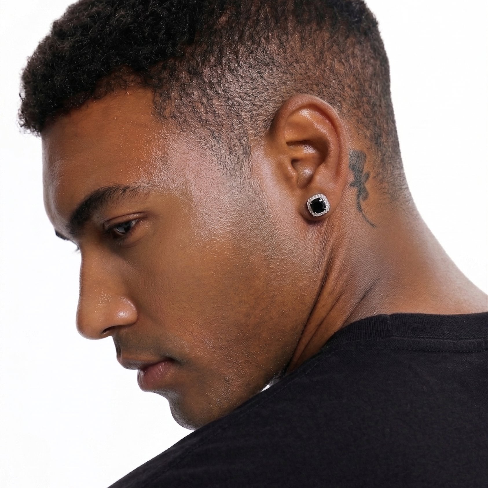 S925 Black Moissanite Halo Square Stud Earrings