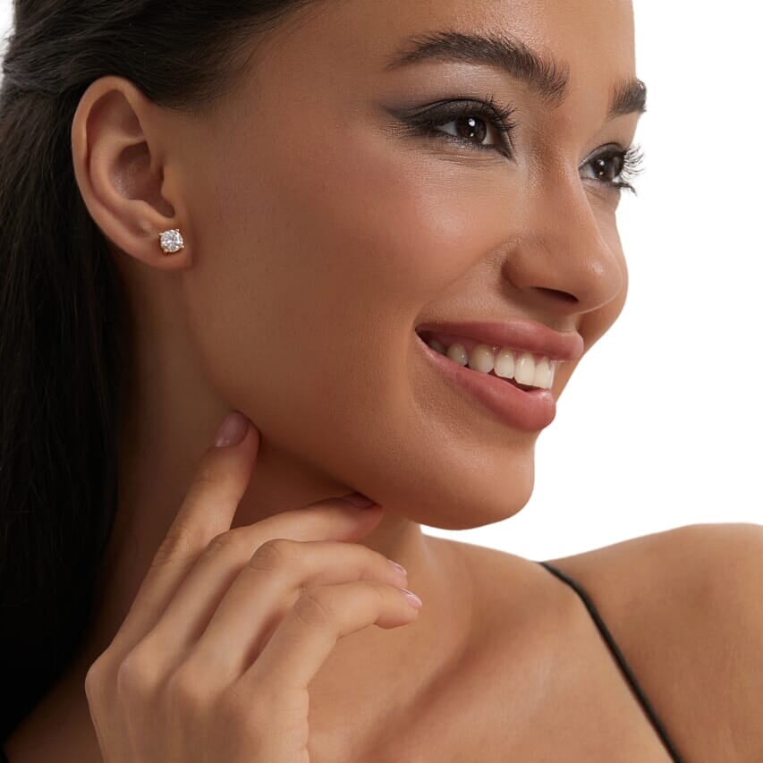 Crafted with 925 Italian silver as the base material, our earrings are kind to all skin types. Featuring authentic 14k, 18k, and white gold, our pieces are enhanced with five layers of PVD plating technology and a high-polish finish for exceptional brilliance and durability. For diamond earrings, we provide hand-set D color VVS1 moissanite stones or 5A CZ stones as affordable option. Our earrings are hypoallergenic, tarnish-resistant, ensuring lasting comfort and durability.
