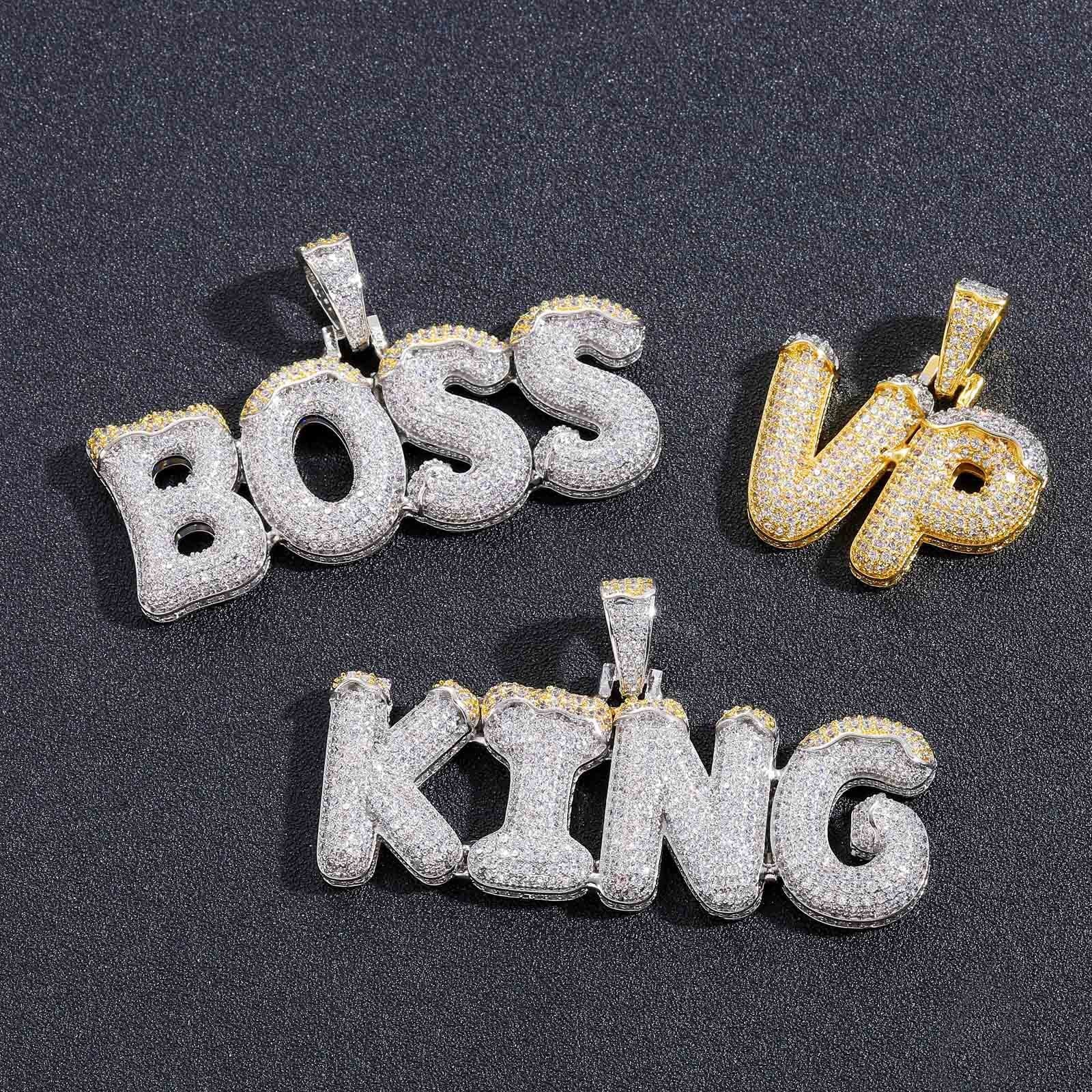 Custom Iced Bubble Letters With Snow Pendant Necklace