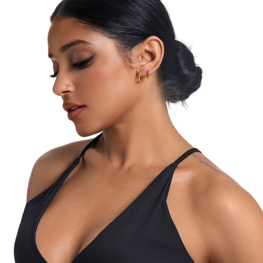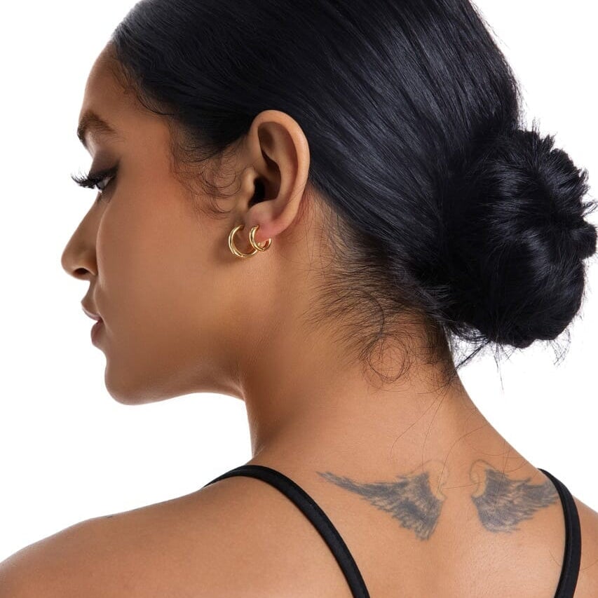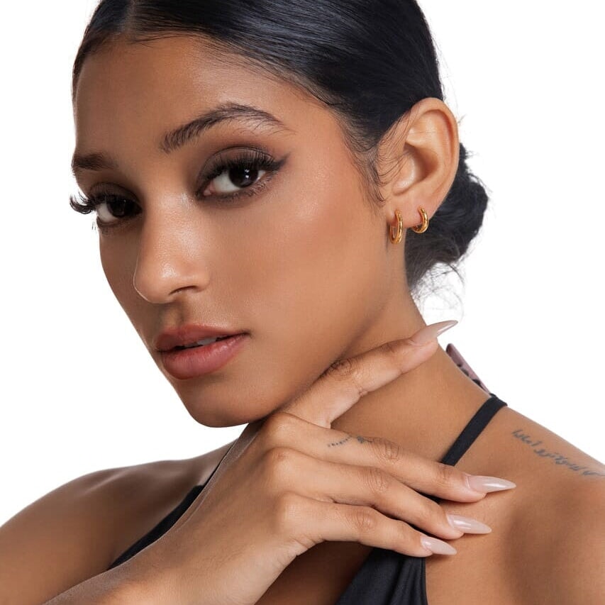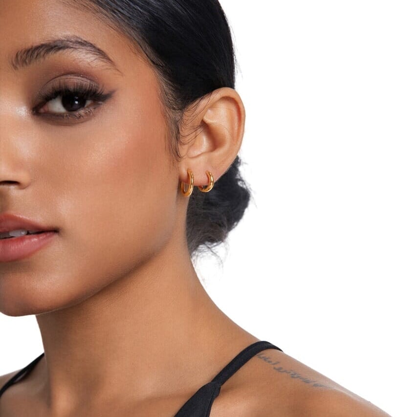 Crafted from hypoallergenic 925 sterling silver with a durable five-layer 14K gold finish, these huggie hoops deliver timeless sophistication for every moment. Their compact, close-fitting design makes them ideal for sensitive ears while maintaining that polished look you love.