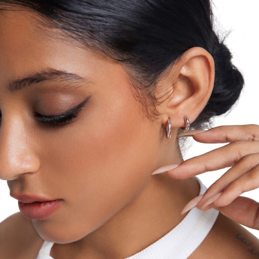These hypoallergenic 925 sterling silver huggie hoops feature a five-layer white gold plating for lasting brilliance. Gentle on all skin types and effortlessly elegant, they're the perfect everyday accessory that works for any occasion.