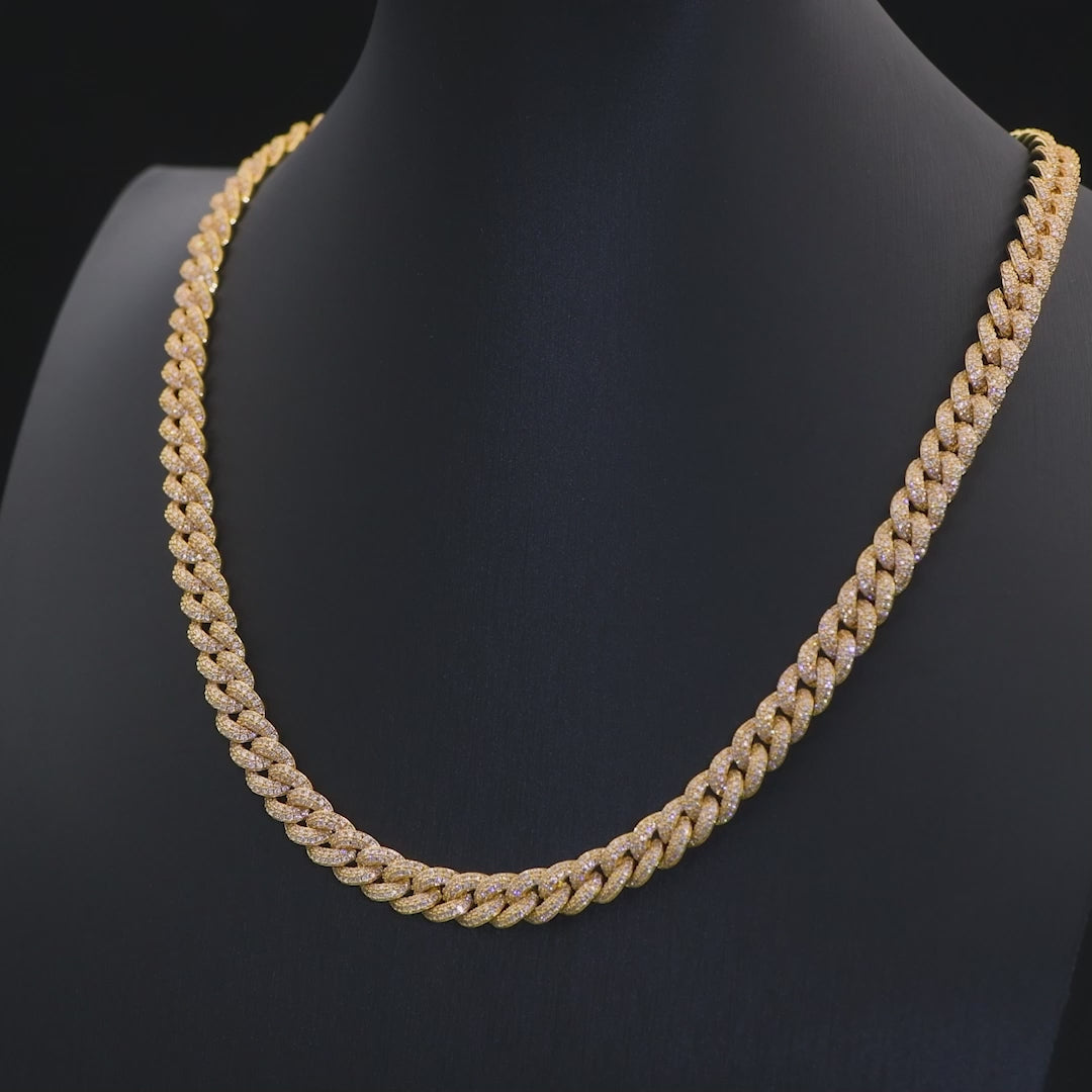 S925 Moissanite Diamond Cuban Link Chain in 14K Gold - 10mm