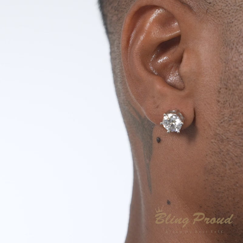 Men's Moissanite Diamond Studs Earrings in White Gold - 6 Prongs
