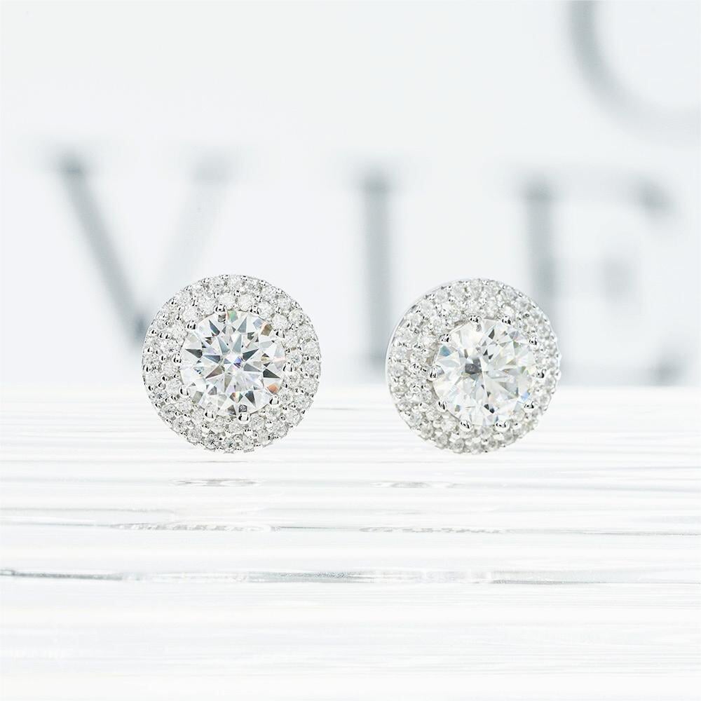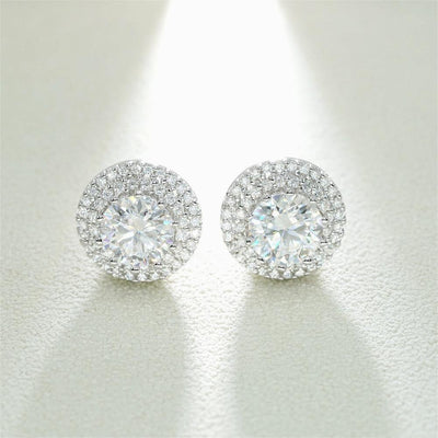 S925 Halo Round Cut Moissanite Stud Earrings - 2.0 Carat